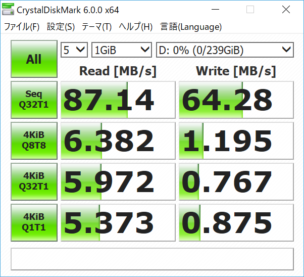- TOSHIBA EXCERIA SDXC 64GB【測定 2018-02-22】