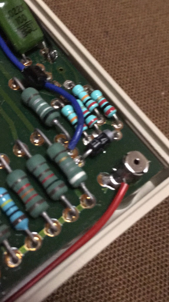 テスターの基板は、4箇所のテストリードが入るミノムシとがっつり半田付けで固定されています。