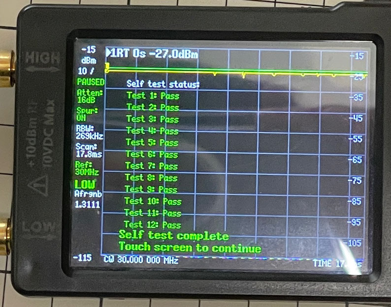 「SELF TEST」を押すとテストが開始され、それぞれのテスト結果が表示されていきます。