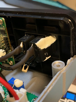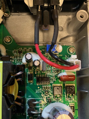 基板からフロントのACコンセントへ出力。接地ラインは未接続。