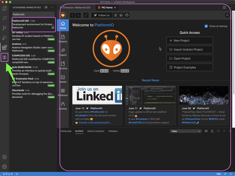 また、左のサイドバー? にPIO Homeアイコンが追加されます。