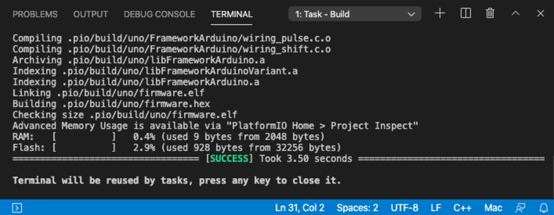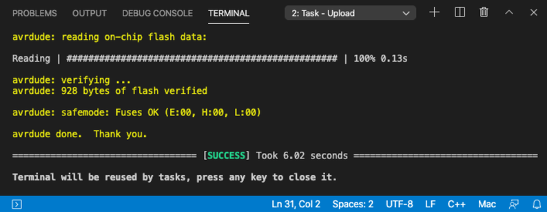 補足: Arduino純正アプリとは異なりアップロード時に再Buildは実行されません。