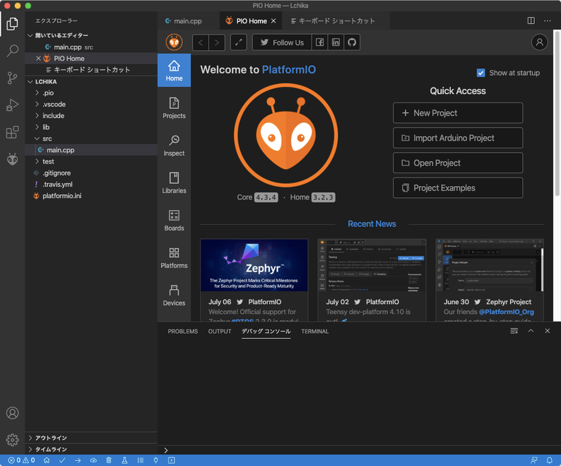 VSCode(Visual Studio Code)の日本語化なのでPlatformIO固有の部分は日本語化は実施されません。