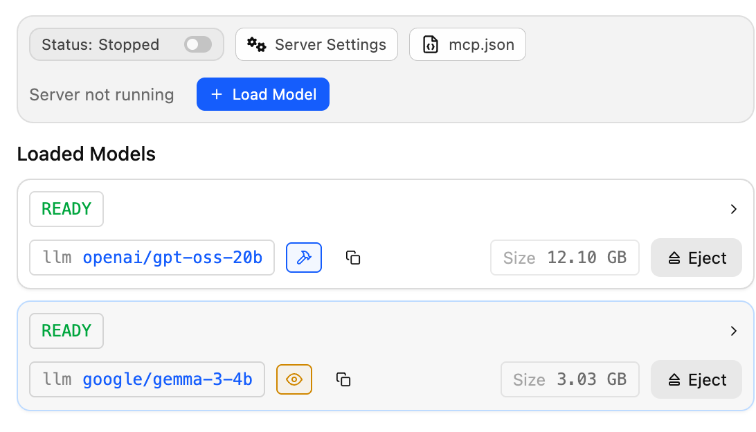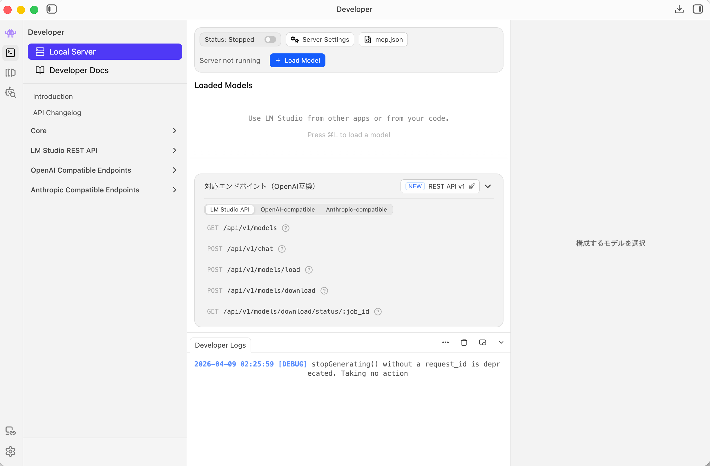 APIを使用するために「LM Studio」のサーバー機能を次の様に有効化します。