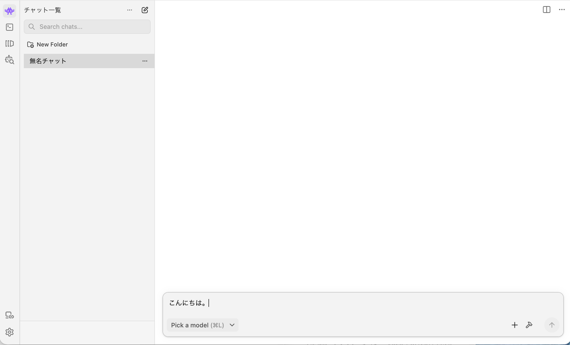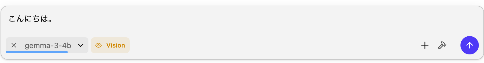 チャットの「Pick a model」をクリックして、モデルをロードしてください。モデルがロードされていなかったので送信ボタンが有効になりませんでした。