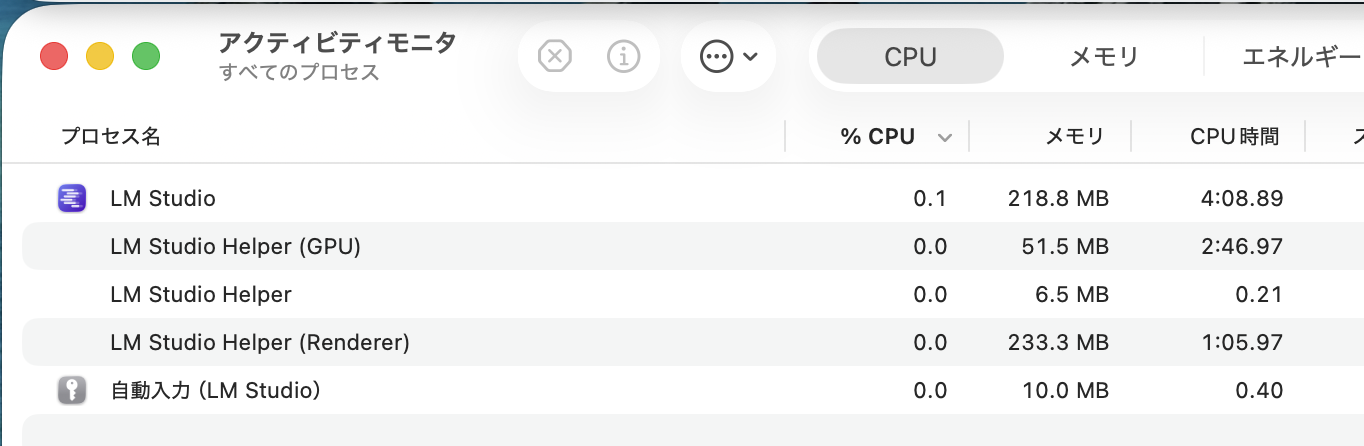 この段階でのmacOSのメモリ使用量をみてみましょう。