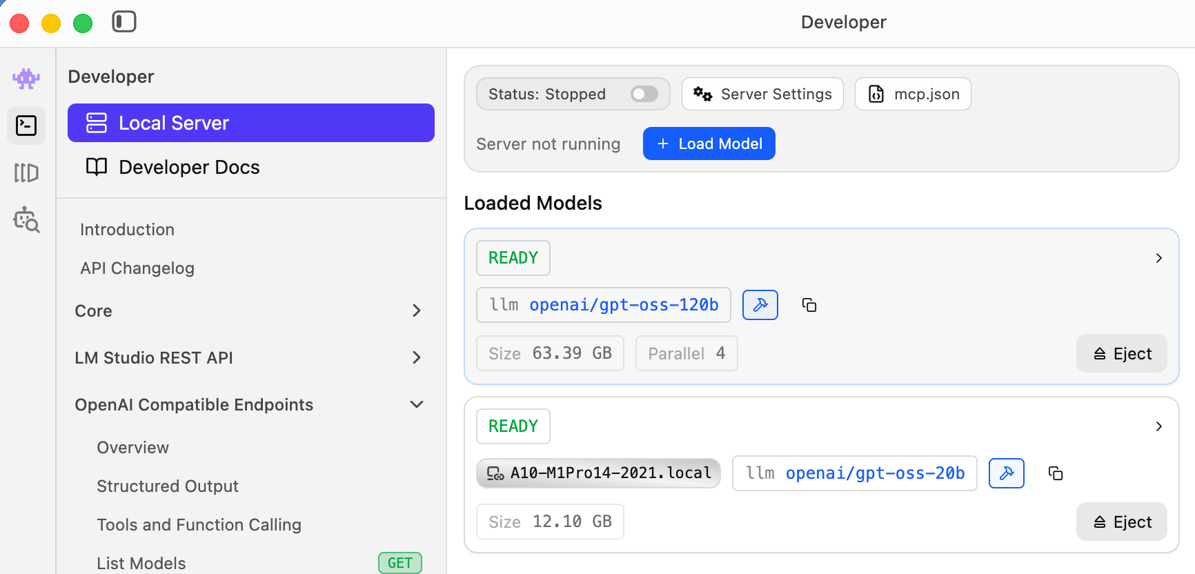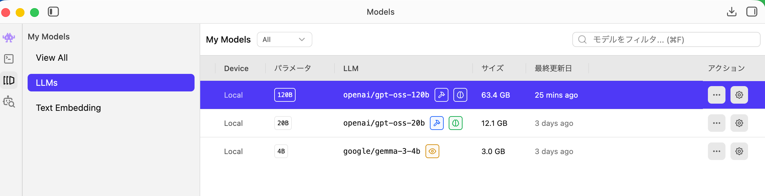 OFFにするとML Linに接続される「「LM Studio」アプリのモデル一覧から除かれます。