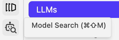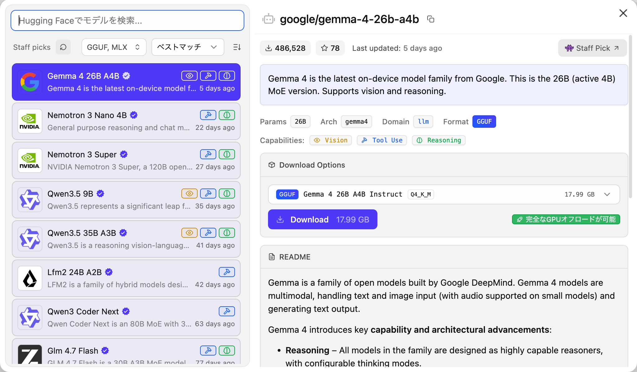 モデルを最初にダウンロードしなかったり、新しいモデルを追加する場合には、My modelsアイコン下の「Model Search」ボタンを押して、モデルを検索してダウンロードします。