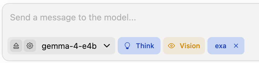 mcp/exaが有効になるとチャットウインドには次の様に「exa」表示が追加されます。