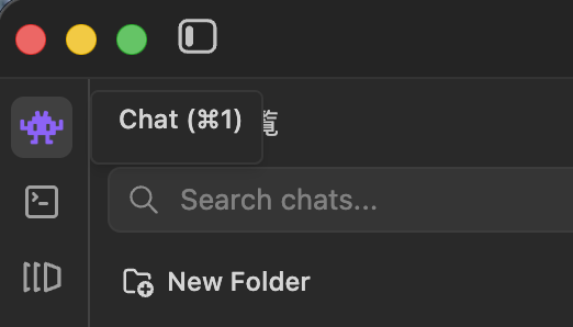 「LM Studio」アプリの左上から「Chat」を選択します。