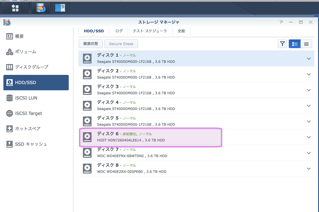 今回はディスクをジーゲート4TBからHSGTの4TBへ変更し交換しました。