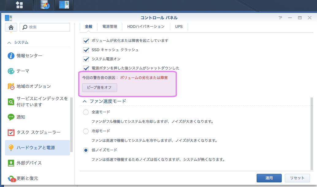 NASのディスク(HDD)に問題が発生した時にどこまで許容するかを設定指定しています。今回はその設定値の不良セクターの許容を超えたので対処しました。