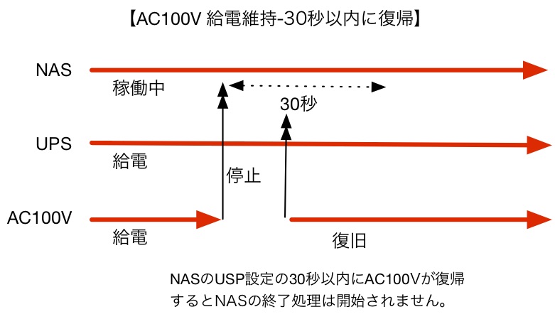 AC100Vが復旧したときは通常のNAS起動と同様です。