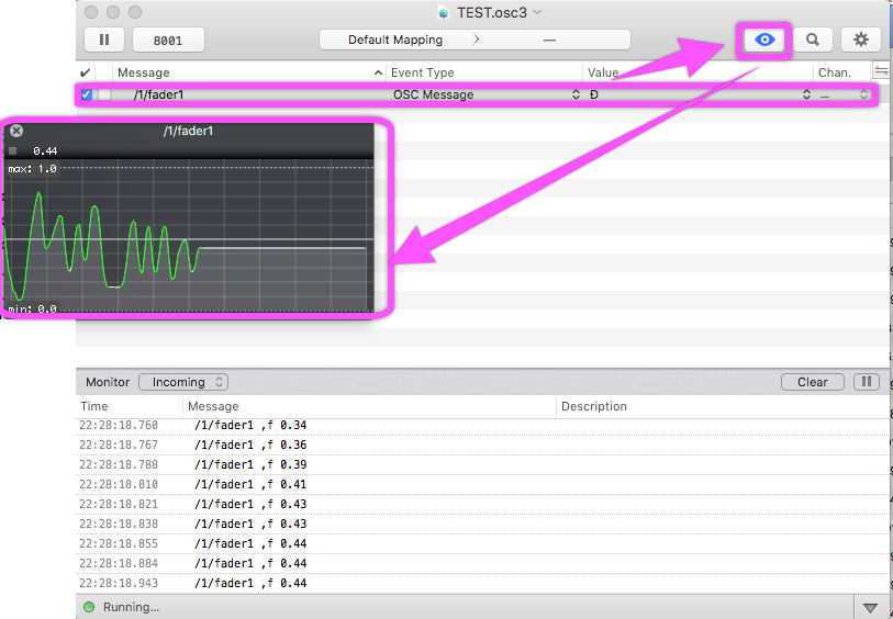 ルーチングされているOSCメッセージをリアルタイムで表示する機能です。