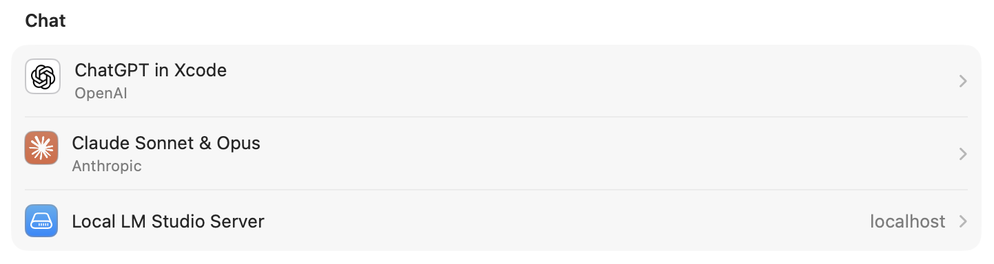 Xcodeと「LM Studio」を接続して、XcodeのChatエンジンとして「LM Studio」のローカルLLMを使用する方法です。