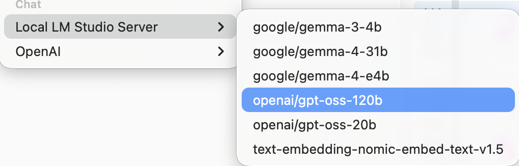 これで、ローカルLLMとして「LM Studio」が使用できるようになりました。